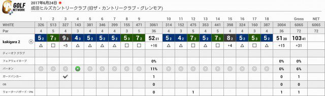キャディさんに助けてもらったのでこのスコアですみましたが、セルフだったら一体いくつ叩いてたのか…。