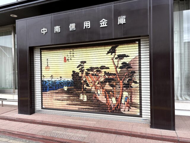 平塚宿に続いて、シャッターに浮世絵。こちらは『虎ヶ雨』ですね。