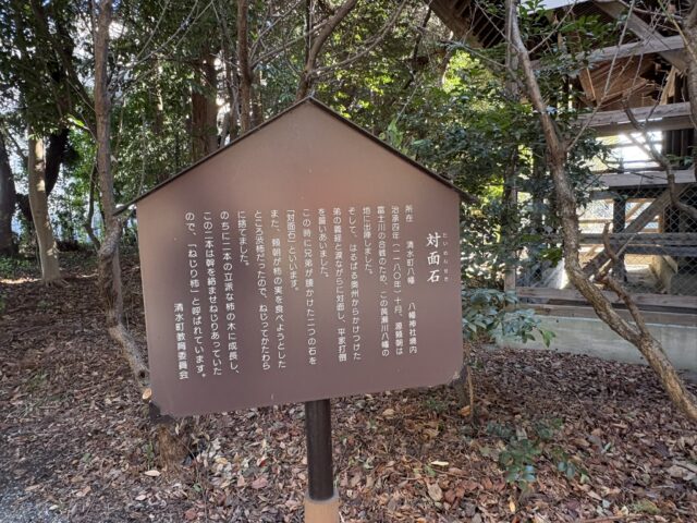 宿場の出口付近にある八幡神社の中には、源頼朝と奥州から馳せ参じた義経が涙の対面をしたと言われる対面石があります。