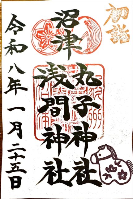 静岡県沼津市浅間町に鎮座する式内社です。正式名称が『丸子神社 浅間神社』。非常に珍しい名前の神社ですが、なぜ併記されるのかというと、江戸時代の火災により旧社地(現在の丸子町)にあった「浅間神社」へ1877年(明治10年)に合祀・遷座され、一扉二社として統合されたため、だそうです。1月なので、初詣の御朱印を拝受しました。