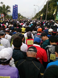 最初は10分/キロを切るペース。順調、順調。